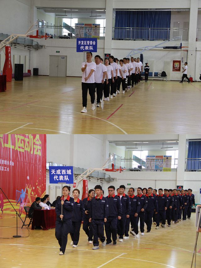 2023年5月10日,开发区第六届职工运动会开幕式在开发区体育活动中心(康健体育馆)隆重举行。来自园区各企事业单位组成的21支代表队近500余名运动员将在为期3天的比赛中进行篮球、羽毛球、气排球、乒乓球四个团体赛项目的角逐。